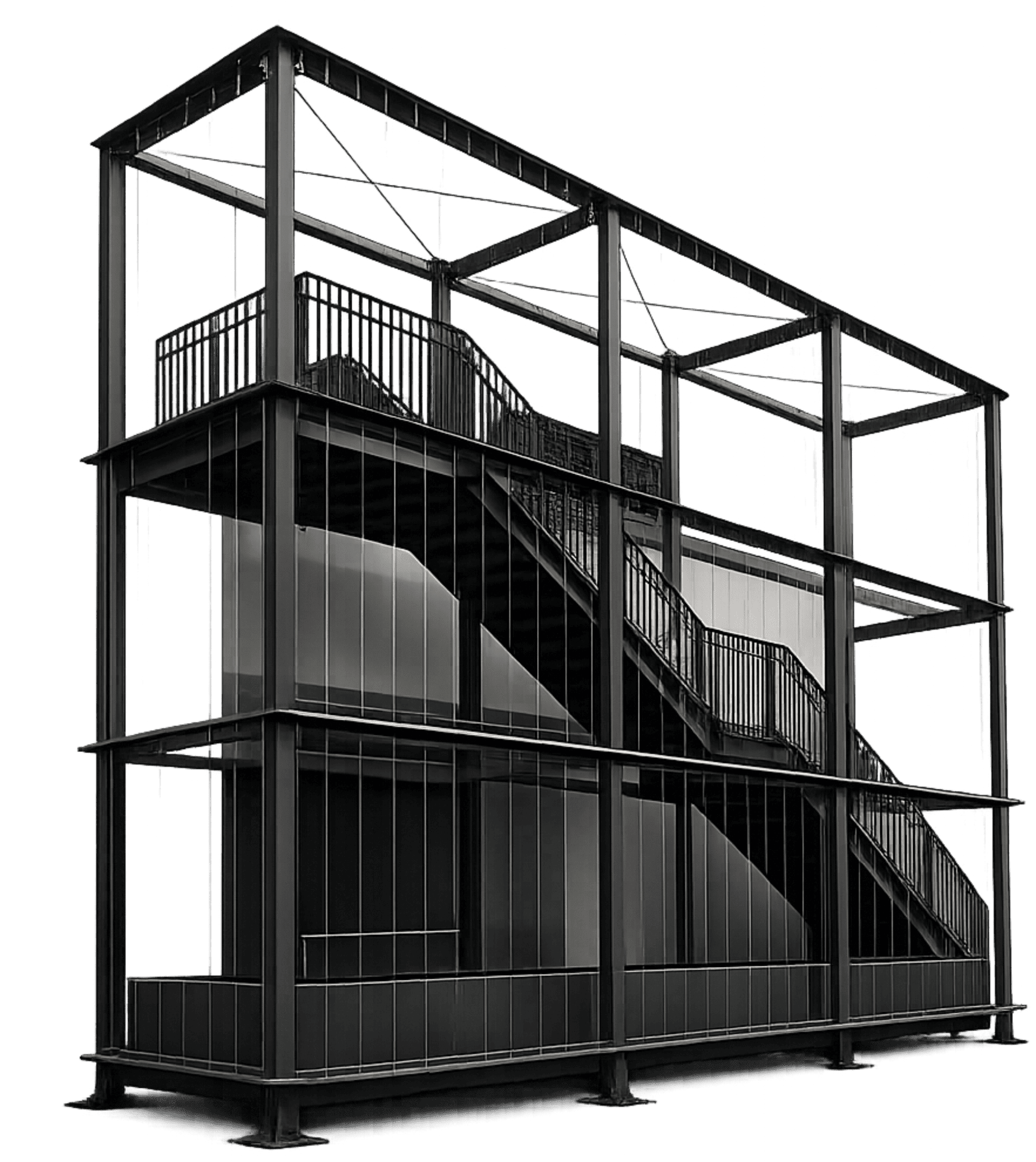 We fabricate a wide range of structural steel elements, including beams, columns, frames, portals, mezzanines, brackets, and support structures. Every component is cut, formed, and welded in-house for a precise fit and a strong, stable result.